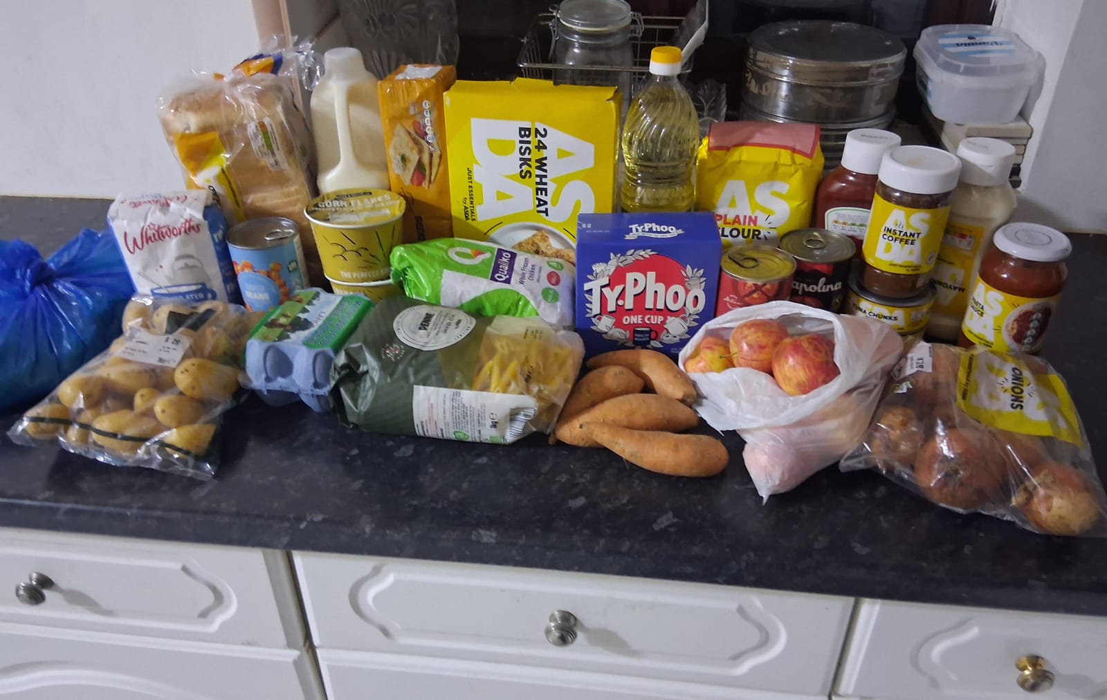 Bags of shopping groceries given to date.