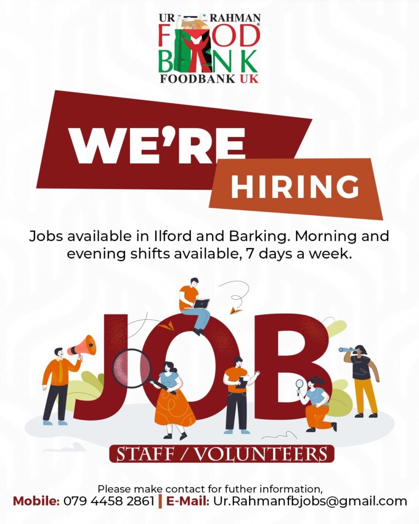 If you would like to become a volunteer and work regularly with UR-Rahman Foodbank in Redbridge, Newham, Tower Hamlets, or in future activities, please complete the volunteer form and send it via WhatsApp.
