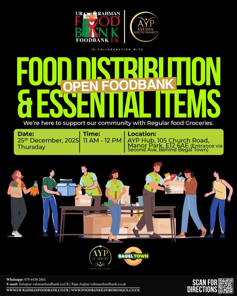 Location, Day and Time with Other Boroughs will be Notified by our Partners who are working with us in Association at UR-Rahman Foodbank via social media , WhatsApp or There website .