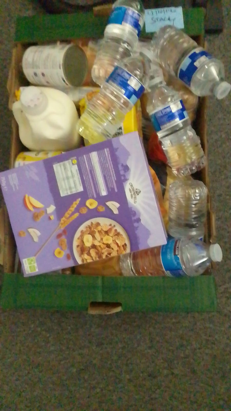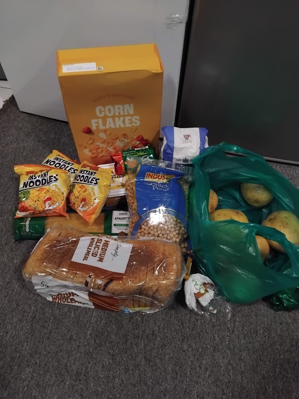 FOODBANK groceries received,fruit, vegetables rice , flour tin food and many more can’t thank you enough.