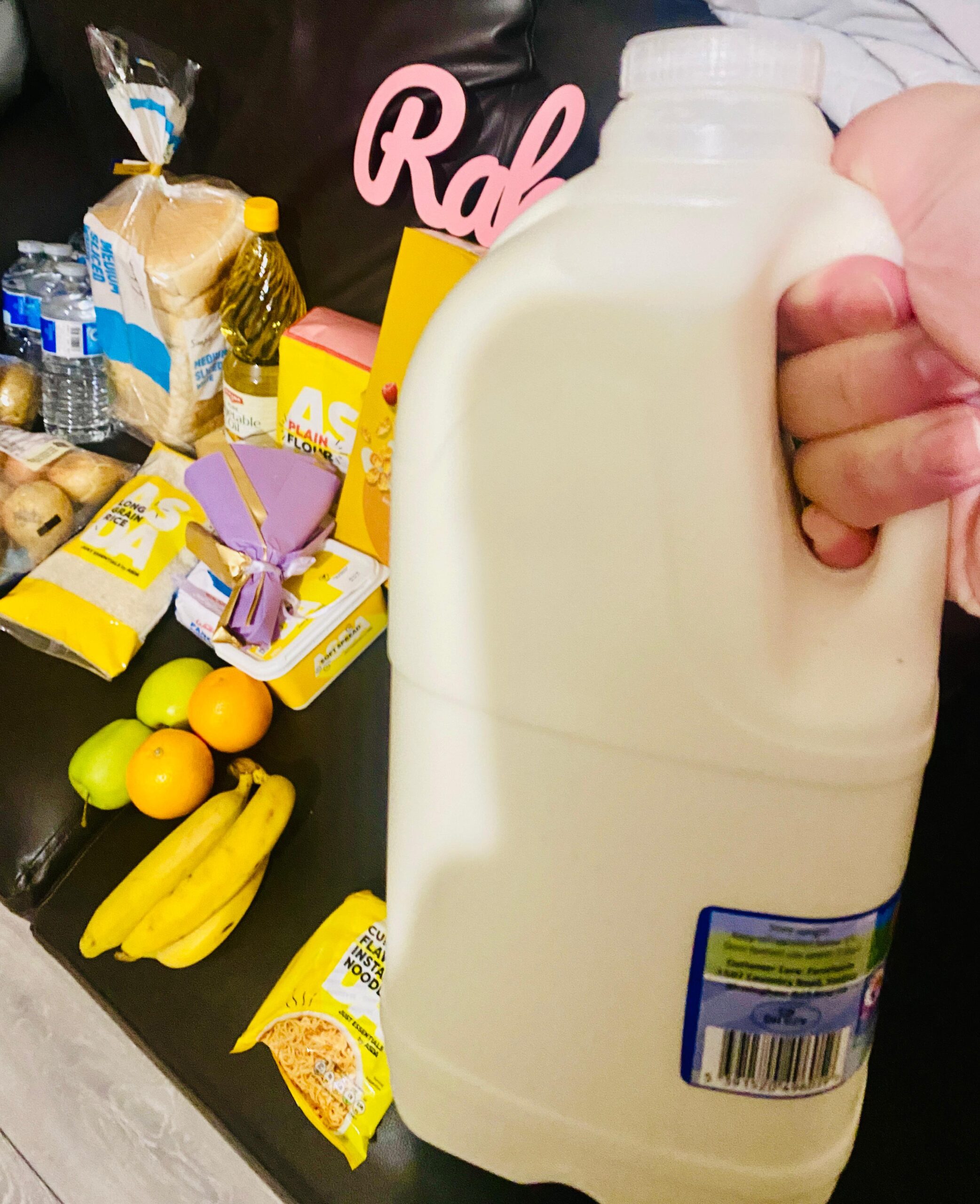 Hello today I received food from UR RAHMAN food bank am so greatfull for supporting me. I took bread coffee sugar, milk fruits and cooking oil.
